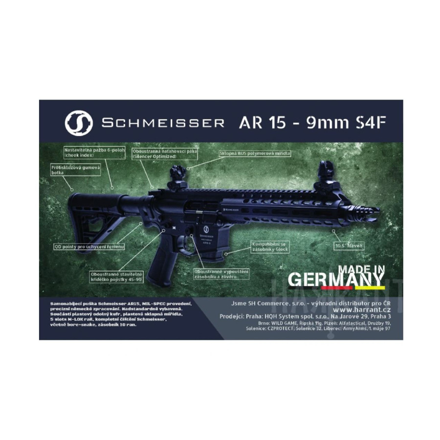 Puška používá pouze nejkvalitnější materiály a je kompletně sestavena v Německu, v dílnách firmy Schmeisser v Krefeldu. Všechny díly, které nejsou přímo od firmy Schmeisser (a těch je opravdu minimum) pochází pouze od evropských NATO certifikovaných výrobců. Puška je určená pro lovecké i sportovní použití a pro sebeobranu.